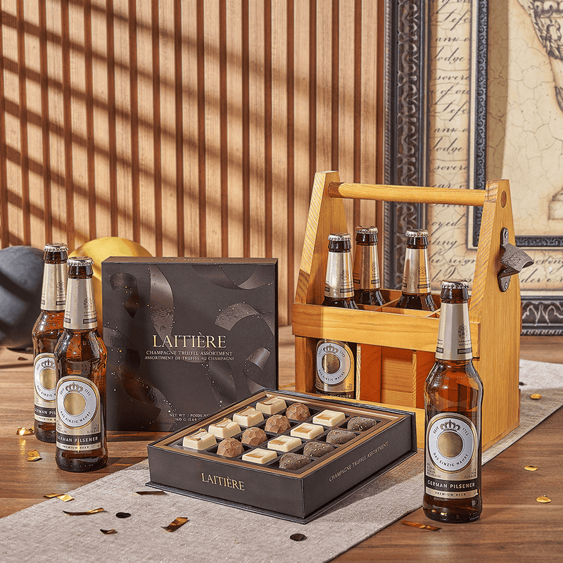 Celebrate this exciting achievement with the Graduation Cold One & Carrier Gift Set. A cold, frosty beer is a fantastic addition to commemorating such a milestone in life. This gift includes six bottles of beer, a box of champagne-inspired chocolate truffles, and a wooden bottle carrier. You may even add on wine, champagne, fruit, and more from our custom options.